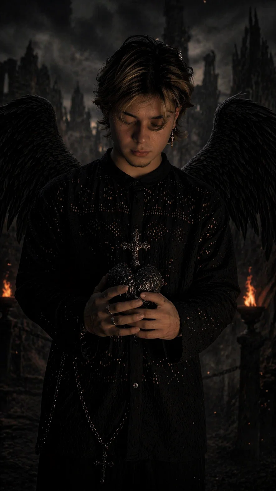 “Heaven lost me… but I still have my wings. 🪽 A fallen angel walking between light and darkness. Not from heaven anymore… but not from hell either.”